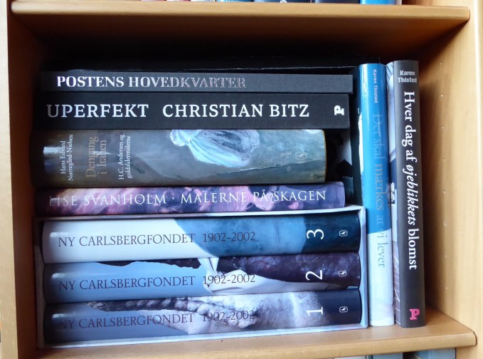 Et lidt blandet rum i reolen med bøger, der ikke rigtig er plads til andre steder. Karen Thisted har skrevet to dejlige samtalebøger. Johannes Møllehave og Hans Edvard Nørregård-Nielsen i fri dressur. Sidstnævnte står bag 3 bindsværket om Ny Carlsbergfondet, hvor han levende beskriver historien og fortæller om de mange skatte som Ny Carlsberg Glyptoteket har samlet gennem årene. Hans Edvard Nørregård-Nielsen har også skrevet bogen om H.C. Andersen og guldaldermalerne “Dengang i Italien”. En spændende bog om dansk kunst- og kulturhistorie.