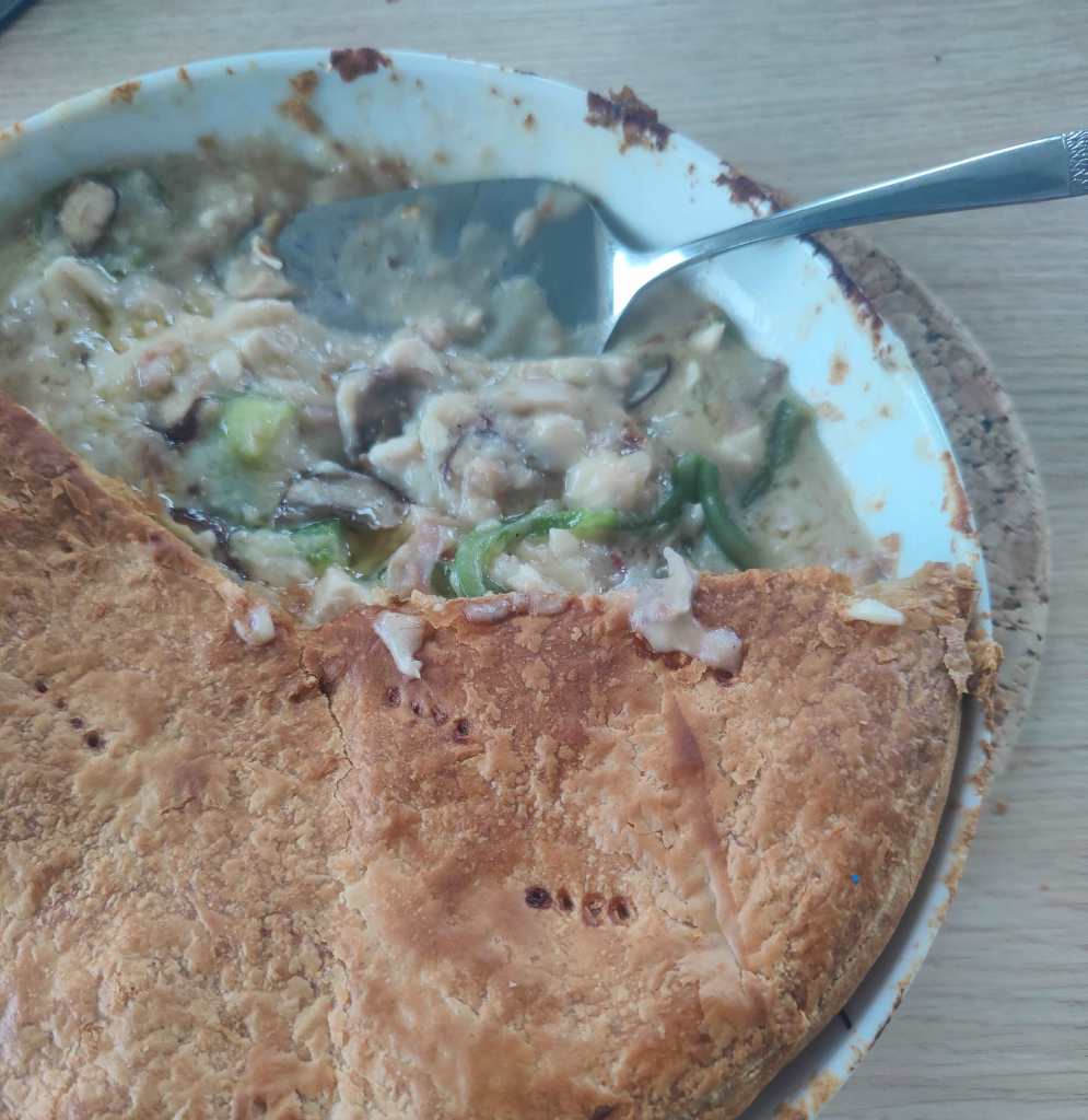 Her er en nem opskrift på en pie – eller tærte om du vil – med kylling. Opskriften er til en stor og fyldig tærte, men du kan strække den til 2 tærter og stadig mætte 6 personer.